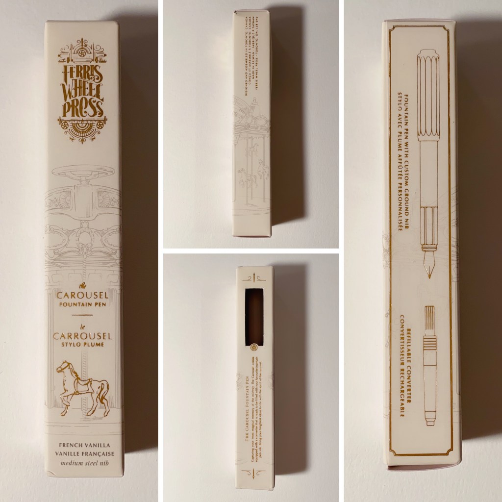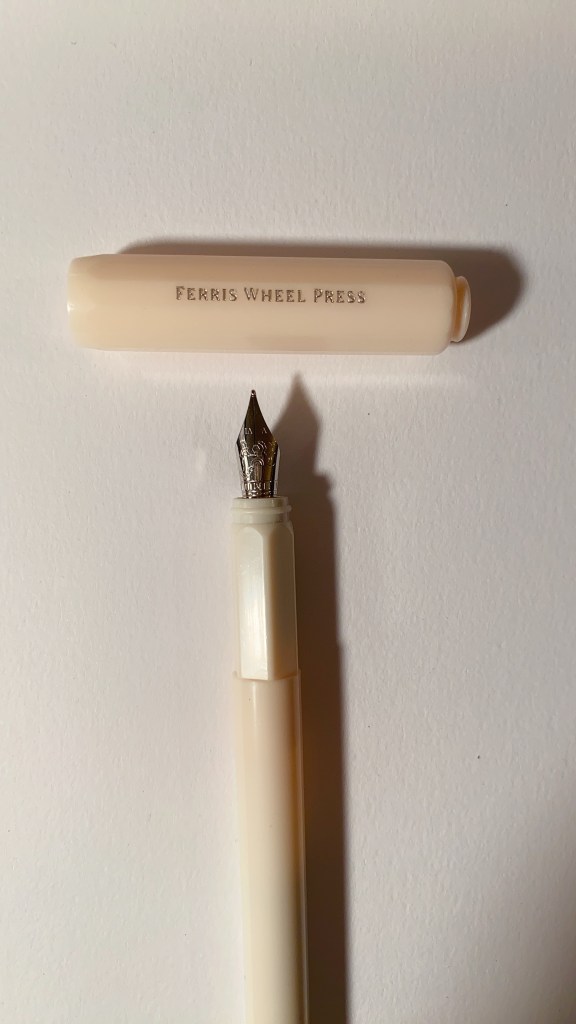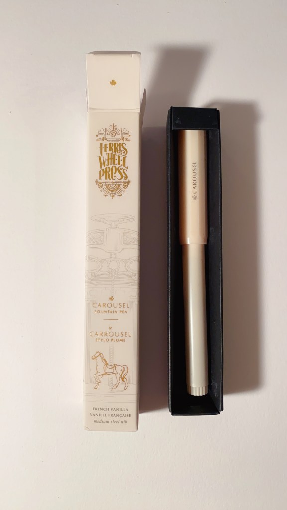 I got a new fountain pen in the mail last night that I ordered from Pen Chalet. It’s a part of the carousel design from Ferris Wheel Press. It came in 6 different colors and I got the one in French Vanilla. It’s such a pretty pen and writes beautifully. I also love that it also has a carousel design on the nib. 🎠😁